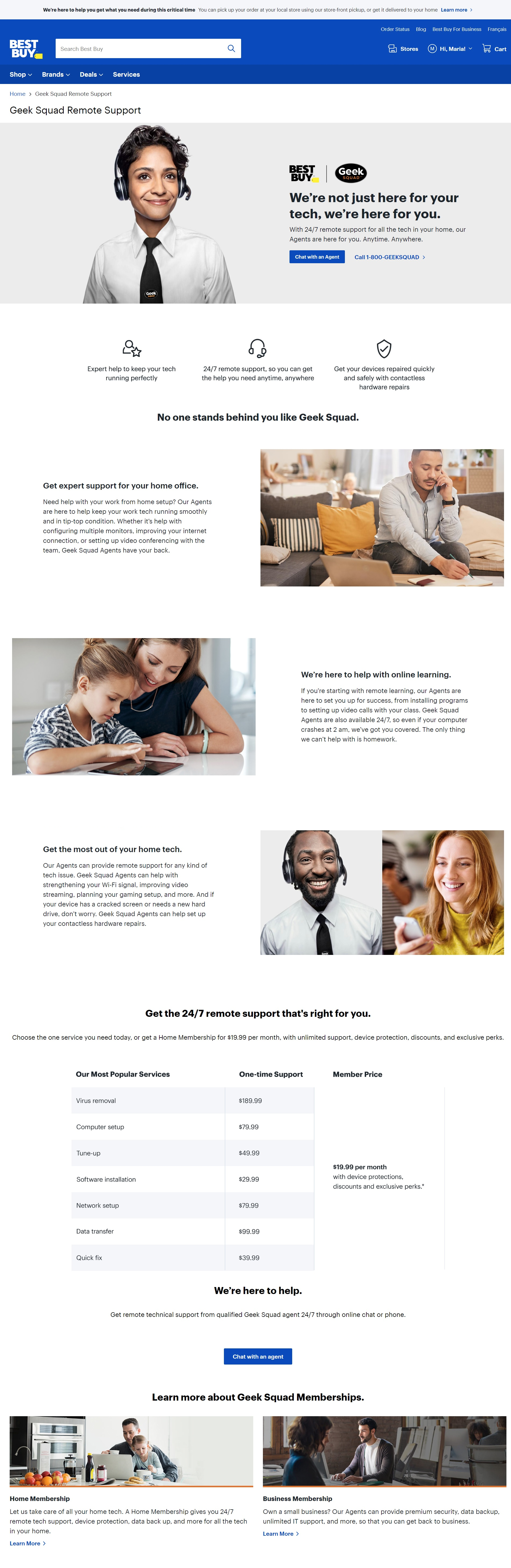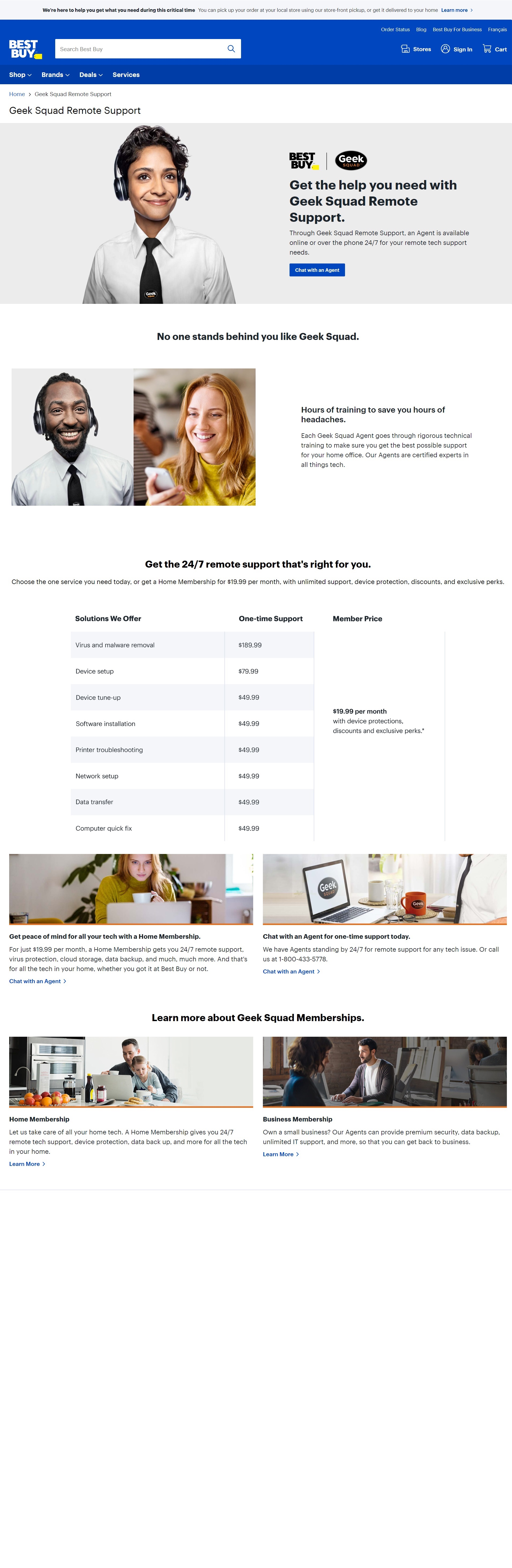 As the COVID-19 pandemic made in-person Geek Squad services temporarily unavailable, the Remote Support program would be more important then ever. I needed to act fast to refresh the Remote Support landing page to give Geek Squad customers the information they needed. Use the centre toggle to compare the previous page (on the left) to our updated version (on the right).
